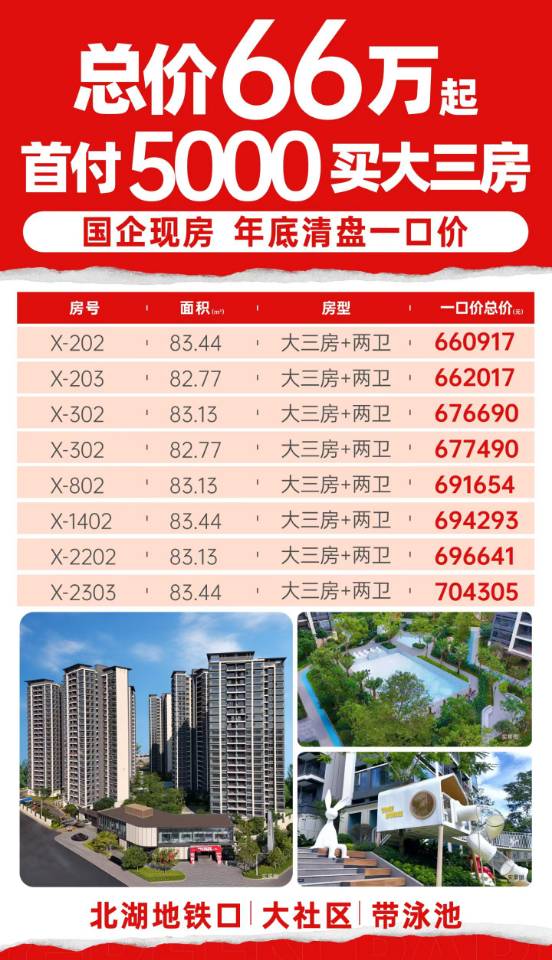 🔥国企现房 年底清盘 💥总价6⃣️6⃣️万起❗首付5000❗ ❗买北湖地铁口大三房❗ #格林水岸 名额有限先到先得