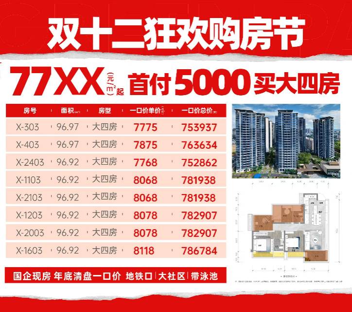 🔥双十二特惠狂欢🎉 7⃣️7⃣️75起❗首付5000❗ 🉐买3号线地铁口大四房‼️ #格林水岸 现在买马上装修入住