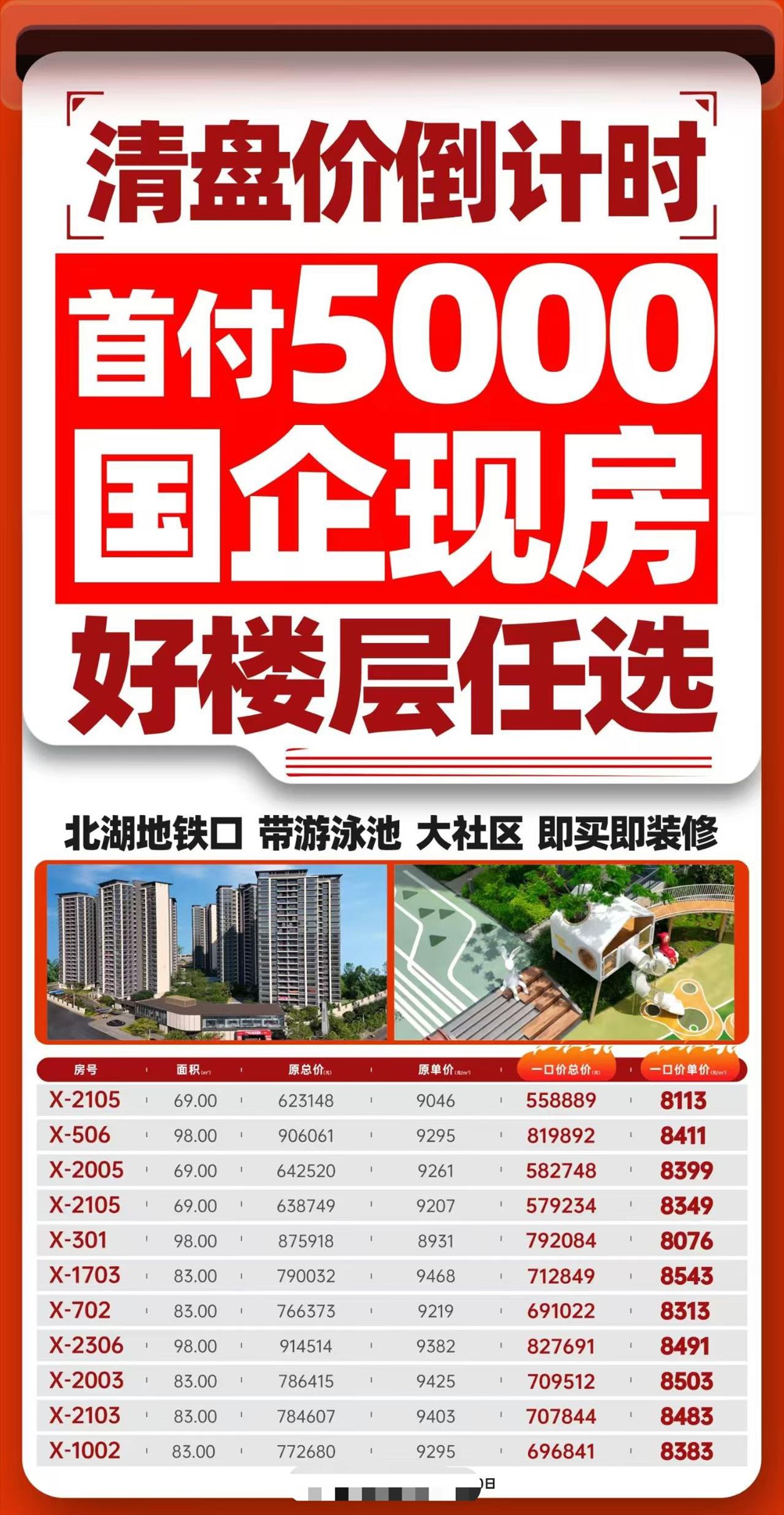 💥北湖地铁口精装7️⃣字头[色] 89平毛坯7100起,精装7760起, 🉑低首付❗房源不多先到先得
